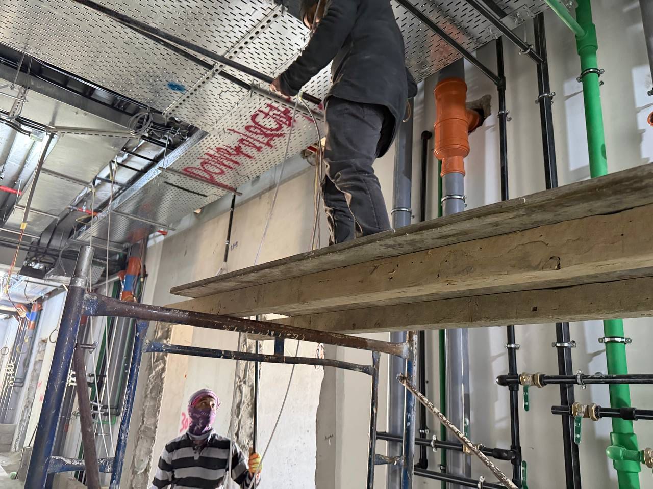 التأسيس للكهرباء والسباكة: تمديد المواسير والأسلاك داخل الجدران والأرضيات قبل التشطيب.