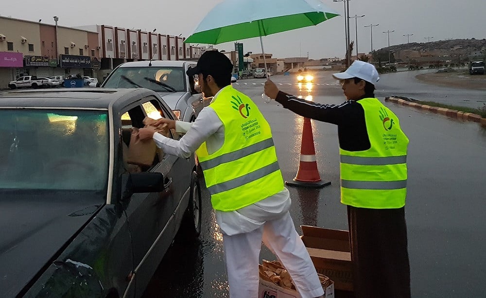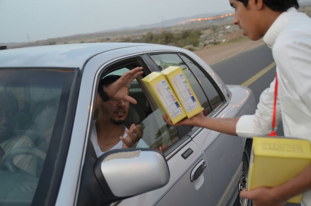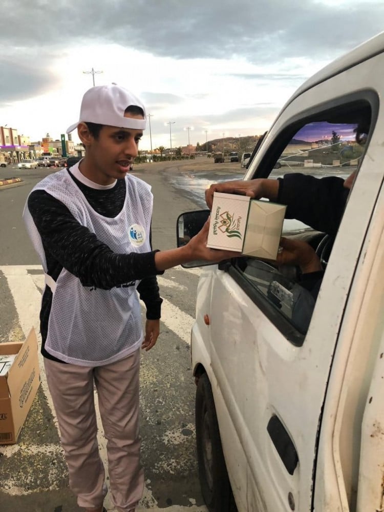 توزيع وجبات باردة مغلفة تحتوي على تمر مغلف ، وعلبة ماء، وقارورة عصير، وقطعة من الفواكة وقطعة معجنات كروسان، على للصائمين قبل الإفطار في التقاطعات والإشارات، يتم تنفيذ المشروع بالاستعانة بجهود فريق بر تندحة التطوعي والهلال الأحمر